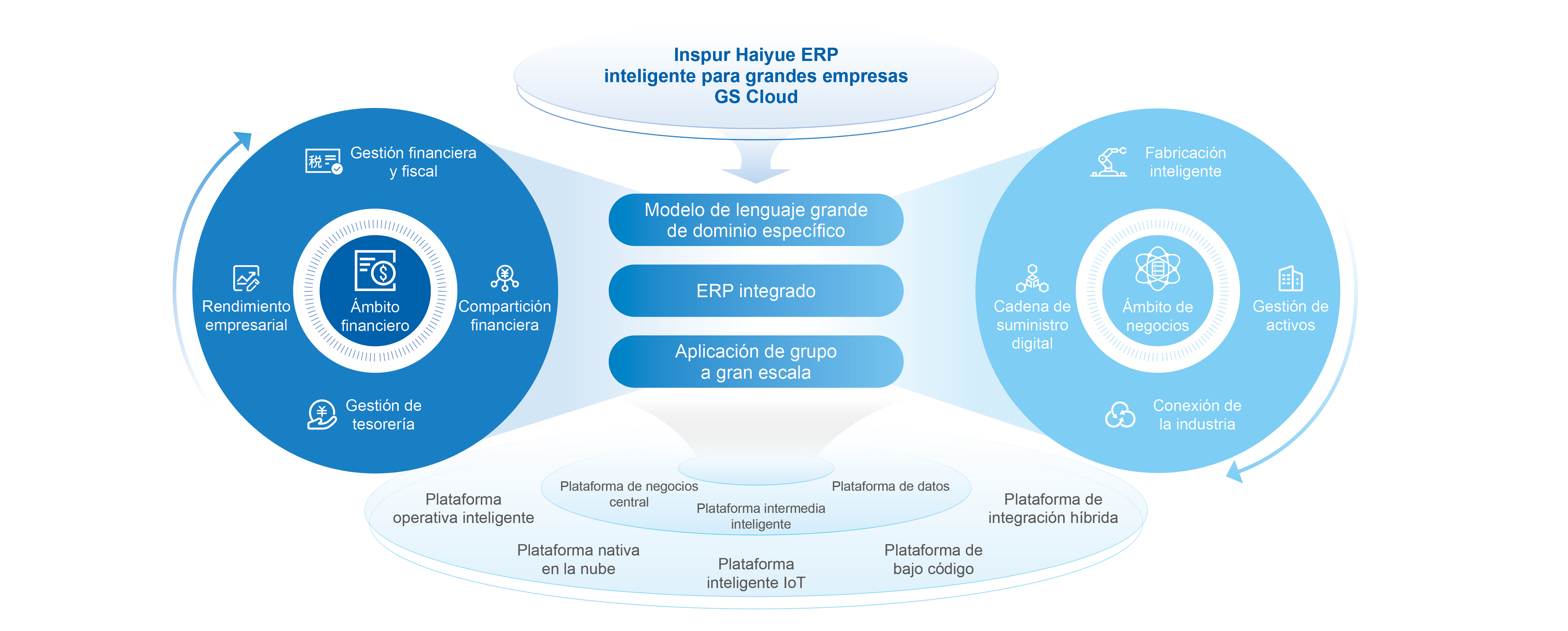 GS Cloud, el sistema ERP inteligente para grandes empresas de Inspur Haiyue, desarrollado con tecnologías nativas de la nube como microservicios, DevOps, contenerización, etc. Admite implementaciones en nubes privadas, públicas y híbridas, se adapta completamente a entornos nacionales e internacionales, y proporciona componentes totalmente internacionalizados y una experiencia de usuario renovada. Con una respuesta empresarial ágil y capacidades de middle office altamente configurables, apoya a las empresas en la innovación a escala continua y el cambio de modelo empresarial. Proporciona a las empresas de grandes grupos una columna vertebral unificada y una plataforma digital flexible para satisfacer las necesidades de gestión y control de grupos multisectoriales, multiorganización y multinivel.