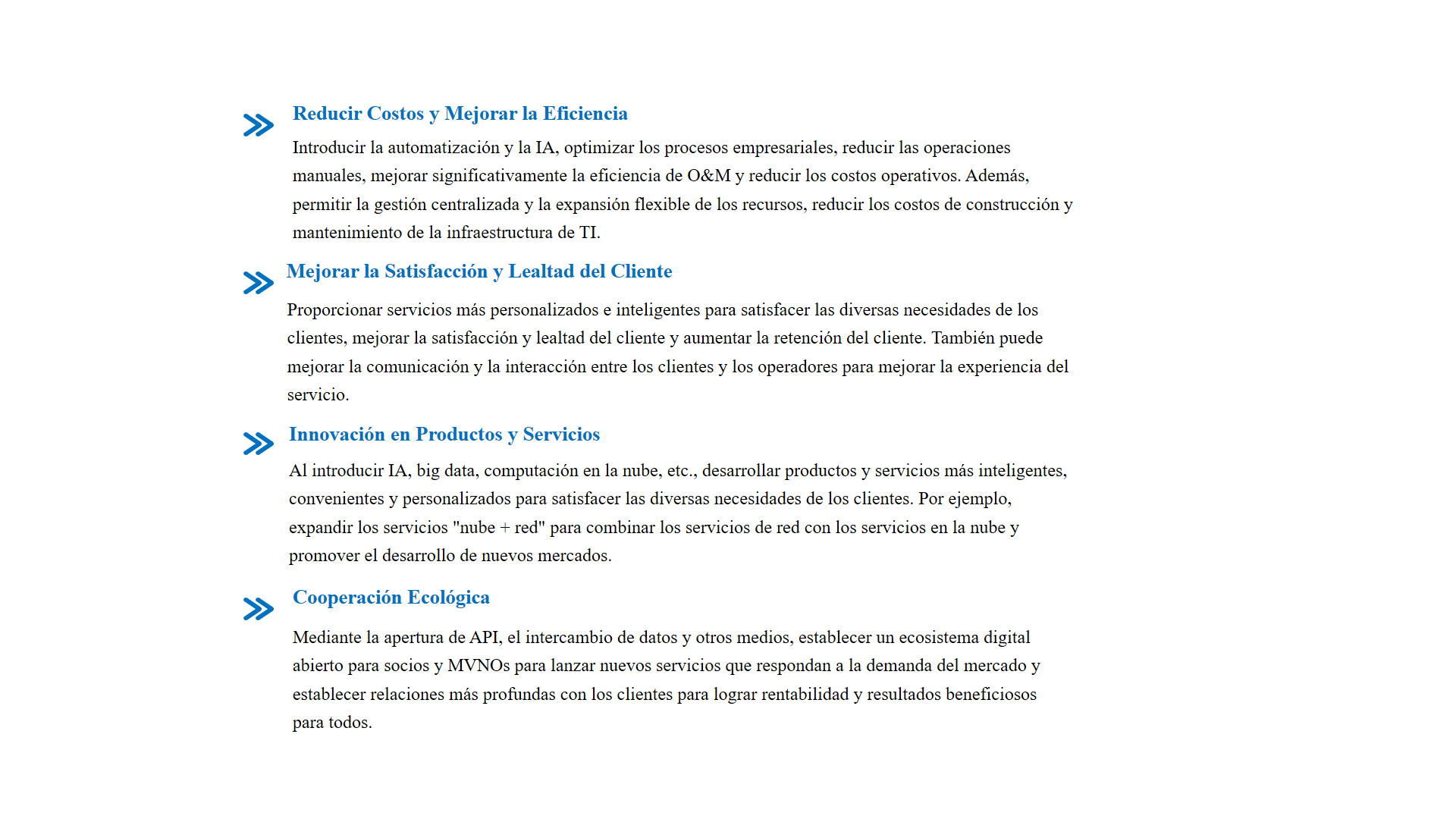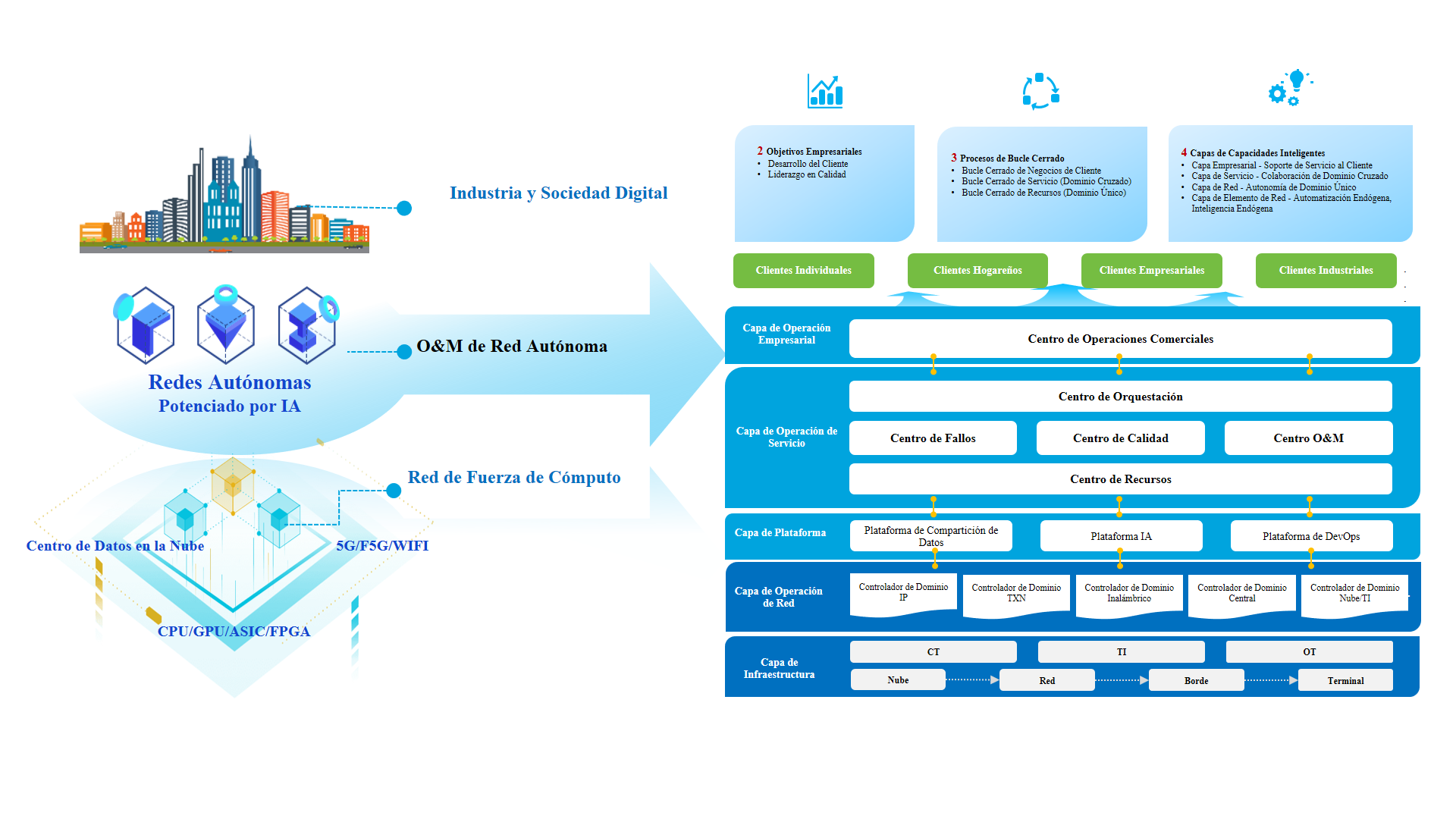 La transformación digital es una tendencia de desarrollo en la industria de las telecomunicaciones, dirigida a lograr una innovación integral en los negocios, la operación y la gestión. A través de la programación inteligente de recursos informáticos, la orquestación y automatización de la red autónoma, el desarrollo ágil de la nube nativa, el despliegue automatizado de DevOps, la construcción del ecosistema abierto de OpenAPI, la toma de decisiones inteligentes de IA y el análisis preciso de Big Data, los operadores pueden ganar mejor la competencia del mercado, satisfacer las diversas necesidades de los clientes y lograr ventajas competitivas sostenibles.